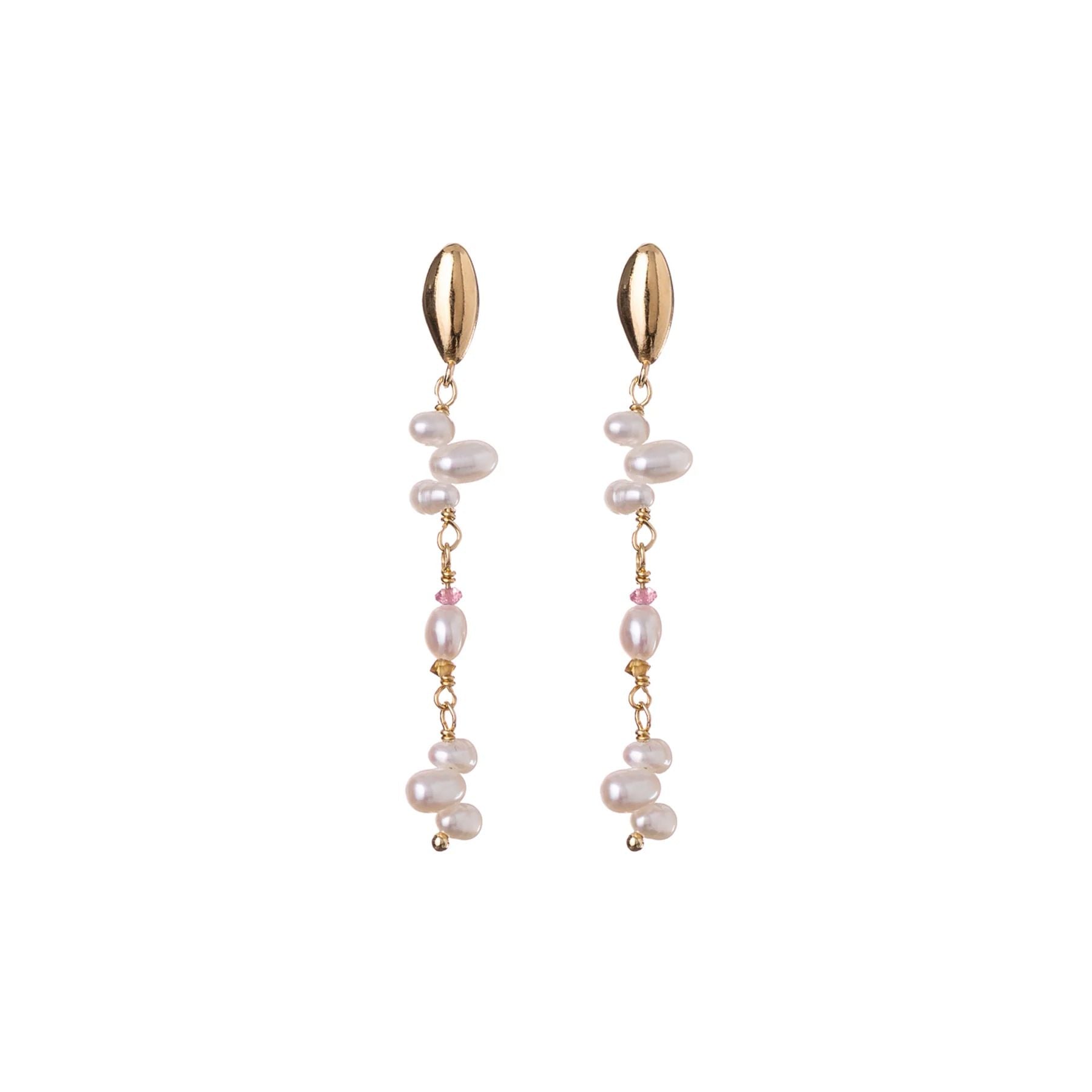 The Carmine Earrings are crafted in 925 sterling silver with 24 karat gold plating, featuring natural pearls. Part of a jewellery line that plays with shades, contrasts, shapes, and colours, this piece draws inspiration from the floral world, offering a vibrant and elegant addition to any look.