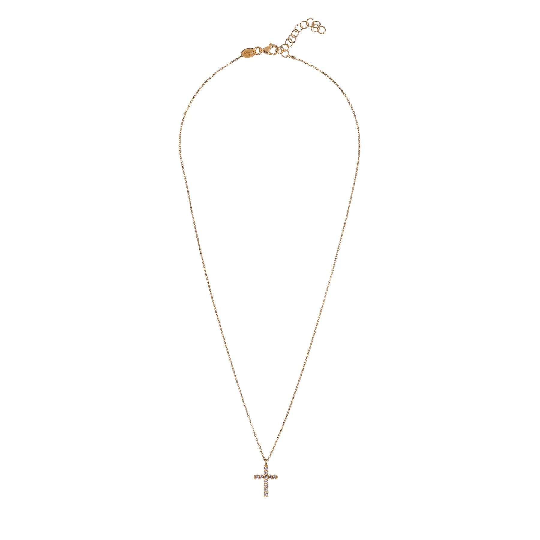 The Santa Cruz Necklace is crafted in 925 sterling silver with 24 karat gold plating, featuring a zircon cross for a touch of brilliance. Part of a refined line, this piece enhances every look with its elegant style and understated sparkle.