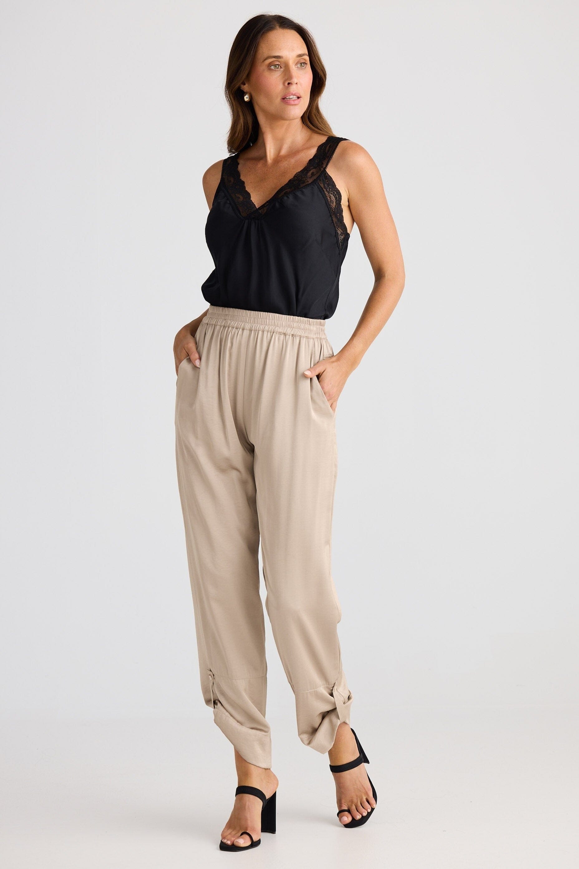 The Wonderland Pant in Stone Taupe Features:
