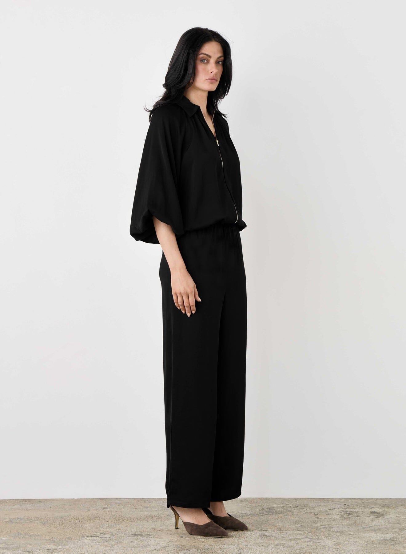 The Esmaee Mercer Bomber Jacket brings effortless edge with its luxe fabrication and sleek zip-up front. Designed with a drawstring hem, soft puffed sleeves and hidden gathered cuffs, this hip-length style is both flattering and easy to wear. Mindfully created, it’s the perfect throw-on piece to elevate any look.