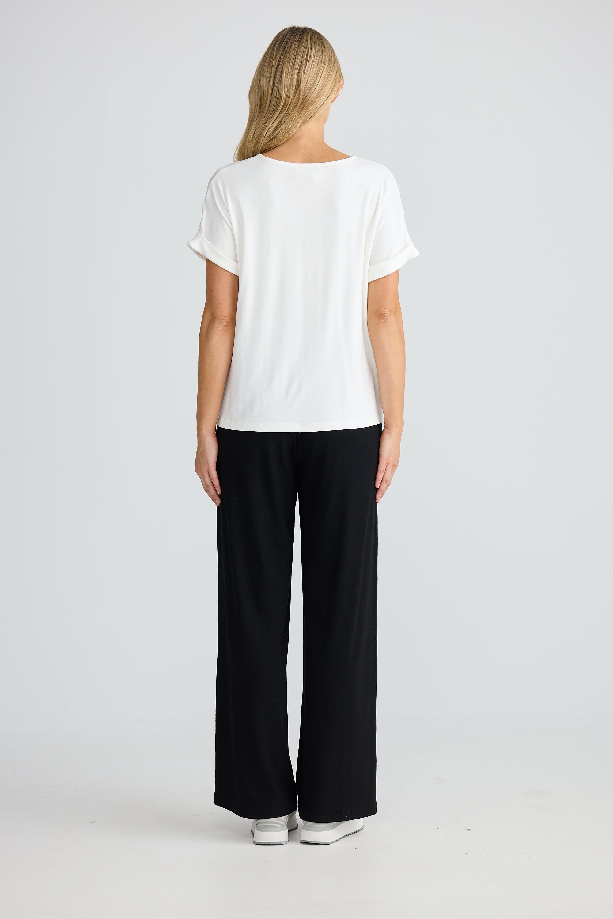 Elevate your everyday with the Homelove Rapture Tee in White. This relaxed-fit, short-sleeve t-bar style features a flattering V-neckline and a twisted knot detail for subtle flair. Crafted from soft, stretch jersey, it offers effortless comfort and versatility for slow mornings or easy outings.