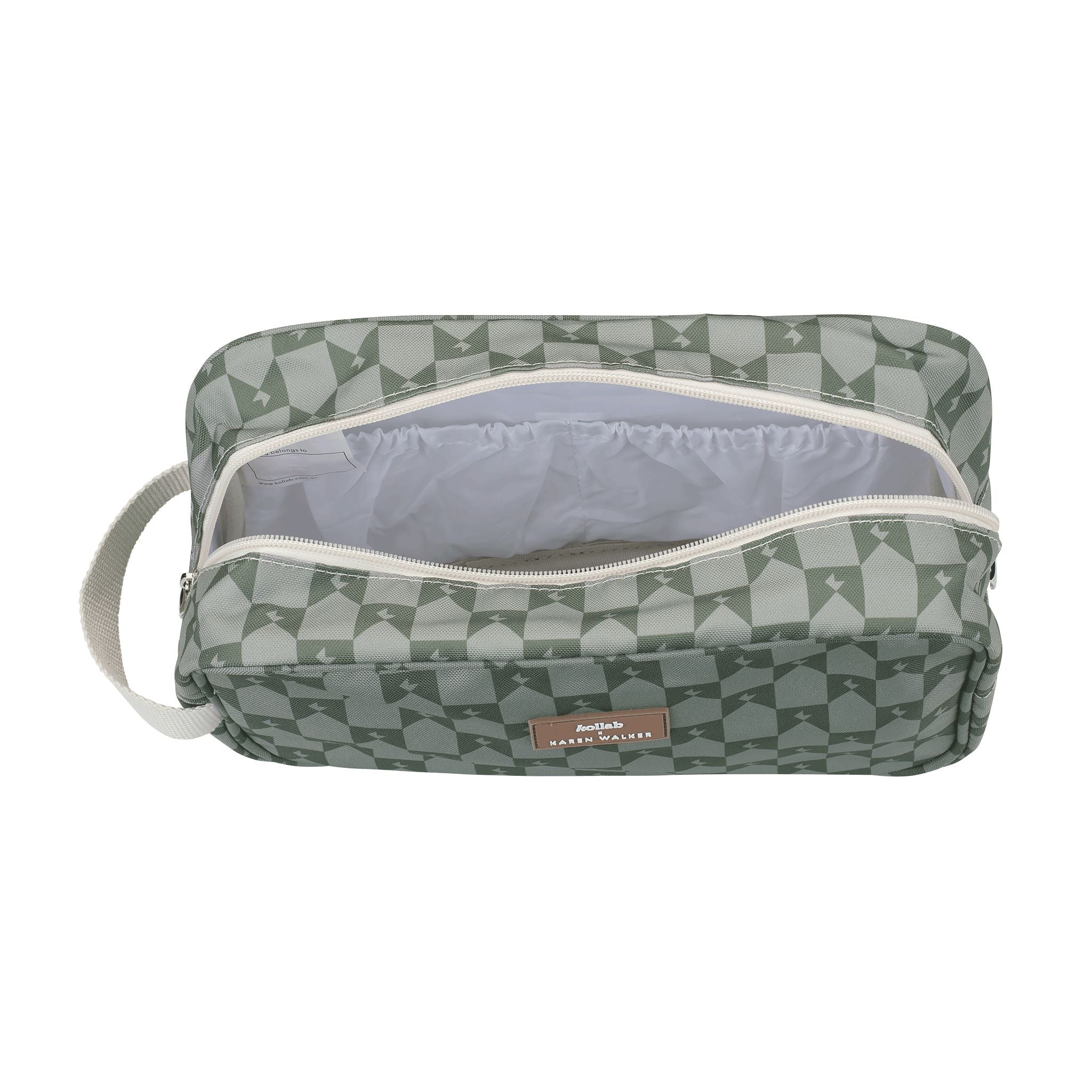 The  Kollab Travel Bag in Sage Monogram is a roomy bag to fit all your necessities for when you’re on the go, at home or away! Keep your make-up organised, toiletries orderly or even your charging banks and cords in check, this bag can do it all.
