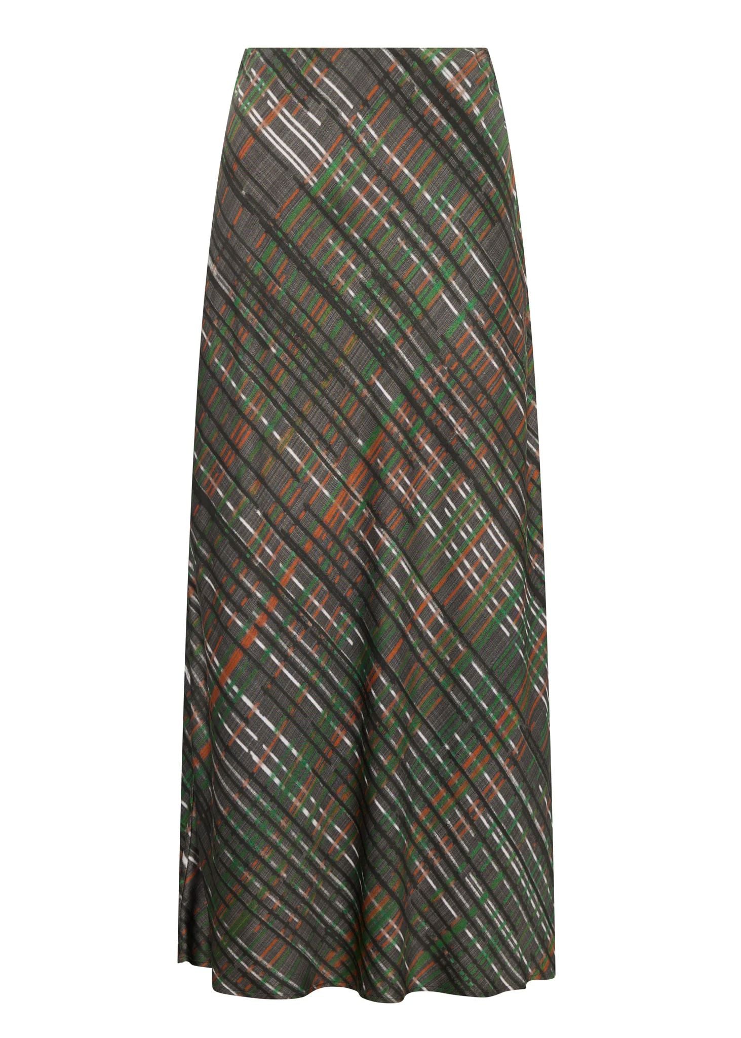 Made from a viscose satin with an exclusive check print, the Della Bias Skirt is a wardrobe classic with a twist.