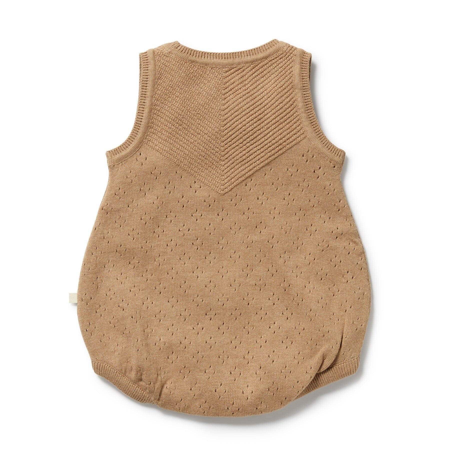 Keep things natural and timeless with our Oat organic knitted tie bodysuit in a soft earthy oat hue. Made from breathable organic cotton pointelle knit, this lightweight baby bodysuit is ideal for warmer days. It features a relaxed fit, functional drawstring waist, and convenient snap openings at the crotch for quick and easy nappy changes. A beautifully simple and practical summer staple for your little one's wardrobe.